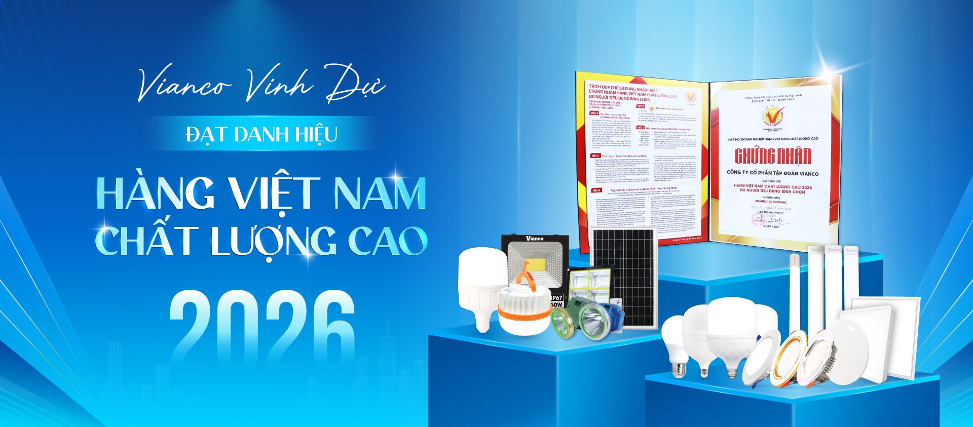 Đồng hành cùng ngành điện cung cấp các giải pháp tiết kiệm góp phần đảm bảo an ninh năng lượng, Tập đoàn Vianco lựa chọn cung cấp các thiết bị đèn LED chiếu sáng thông minh ứng dụng công nghệ xanh và phương pháp sản xuất thân thiện với môi trường.