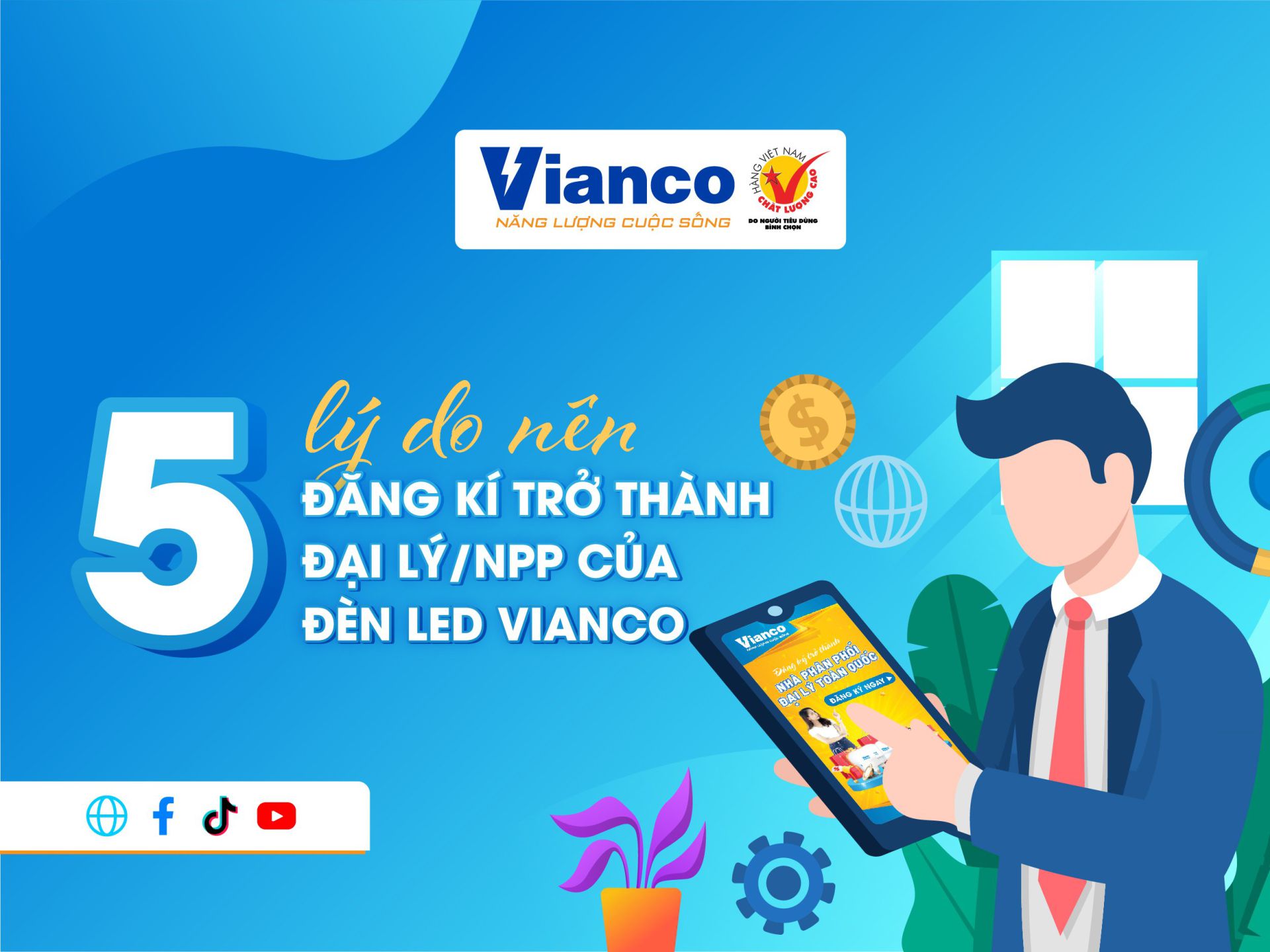 Dưới đây là 5 lý do mà bạn nên đăng ký trở thành Đại lý/NPP của Đèn LED Vianco: