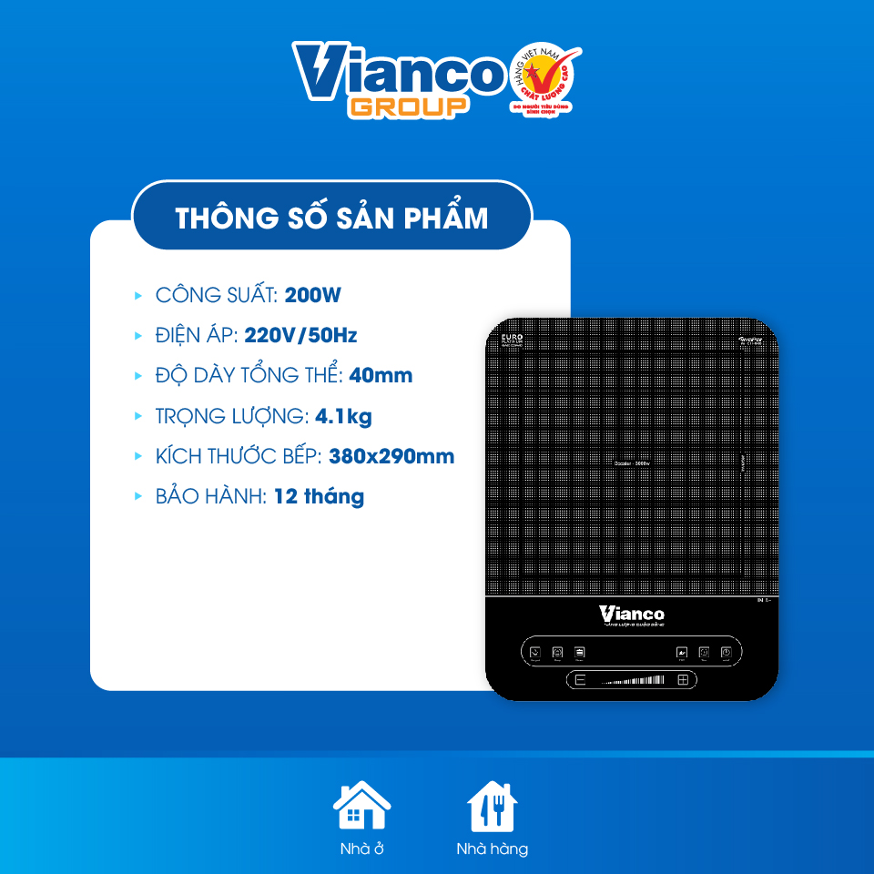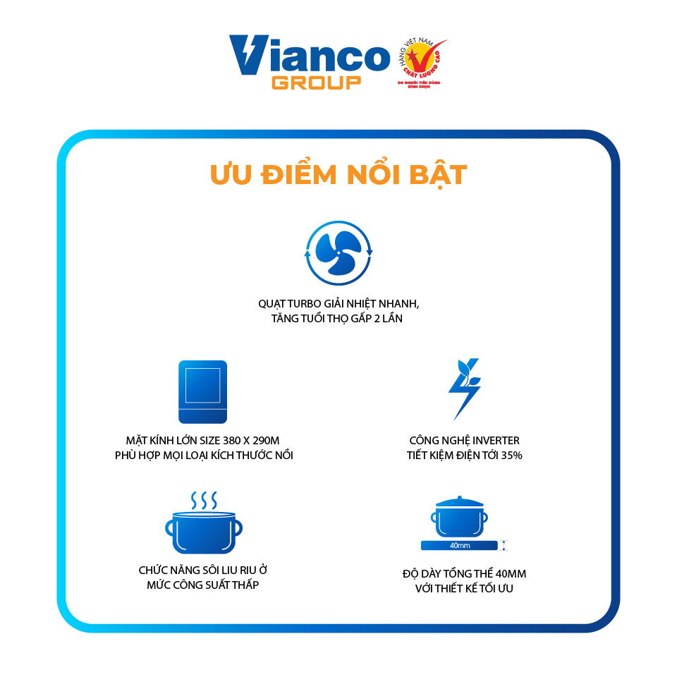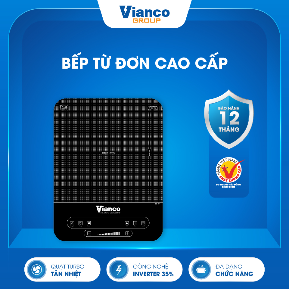 - Bếp từ đơn cao cấp Vianco trang bị nhiều tính năng an toàn thậm chí khi đun dưới nhiệt độ cao cũng không bị nóng, không cháy nổ, không khí thải, đảm bảo an toàn tuyệt đối.