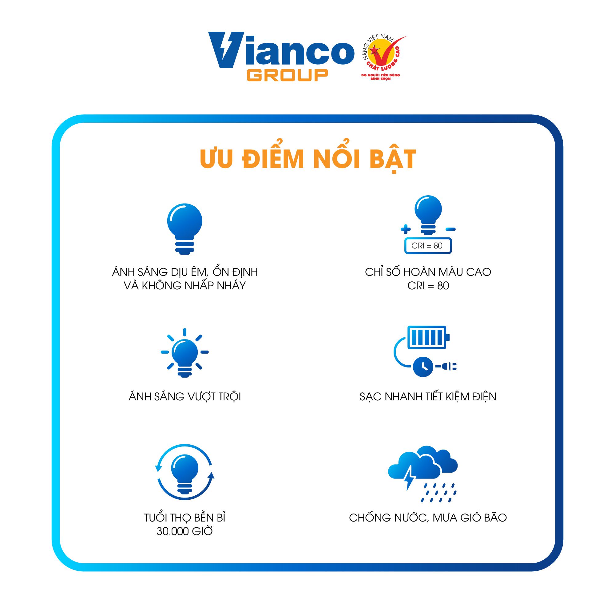 - Ánh sáng chân thực, chống lóa, an toàn cho người sử dụng, tuổi thọ cao..