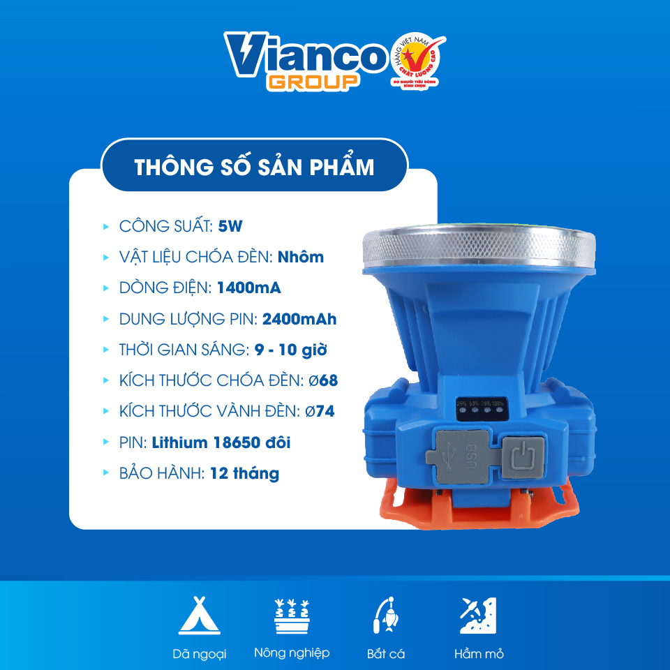 Đèn Đội Đầu Cao Cấp Phi 68_5W (Xanh dương - Ánh sáng vàng)