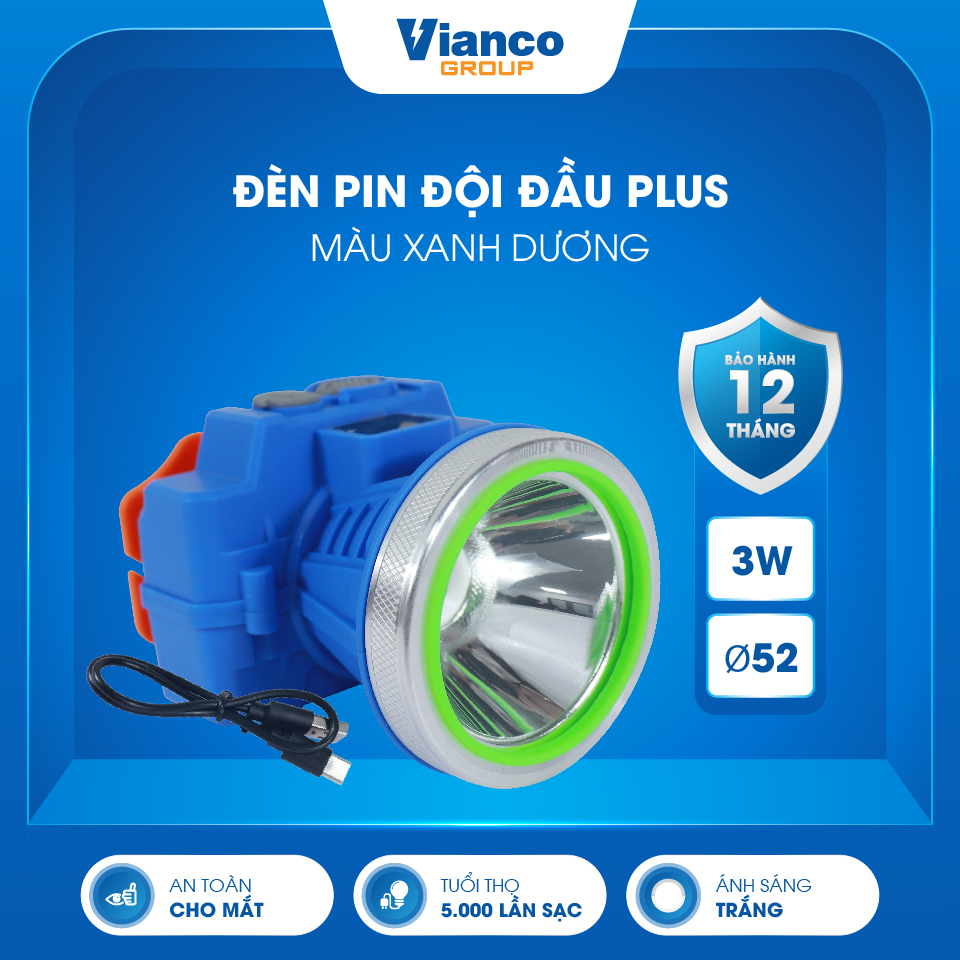 Đèn Đội Đầu Cao Cấp Plus Phi 52_3W (Xanh dương- Ánh sáng trắng)