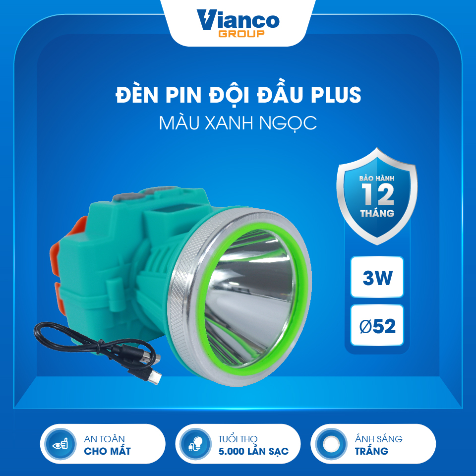 Đèn Đội Đầu Cao Cấp Plus Phi 52_3W (Xanh ngọc- Ánh sáng trắng)