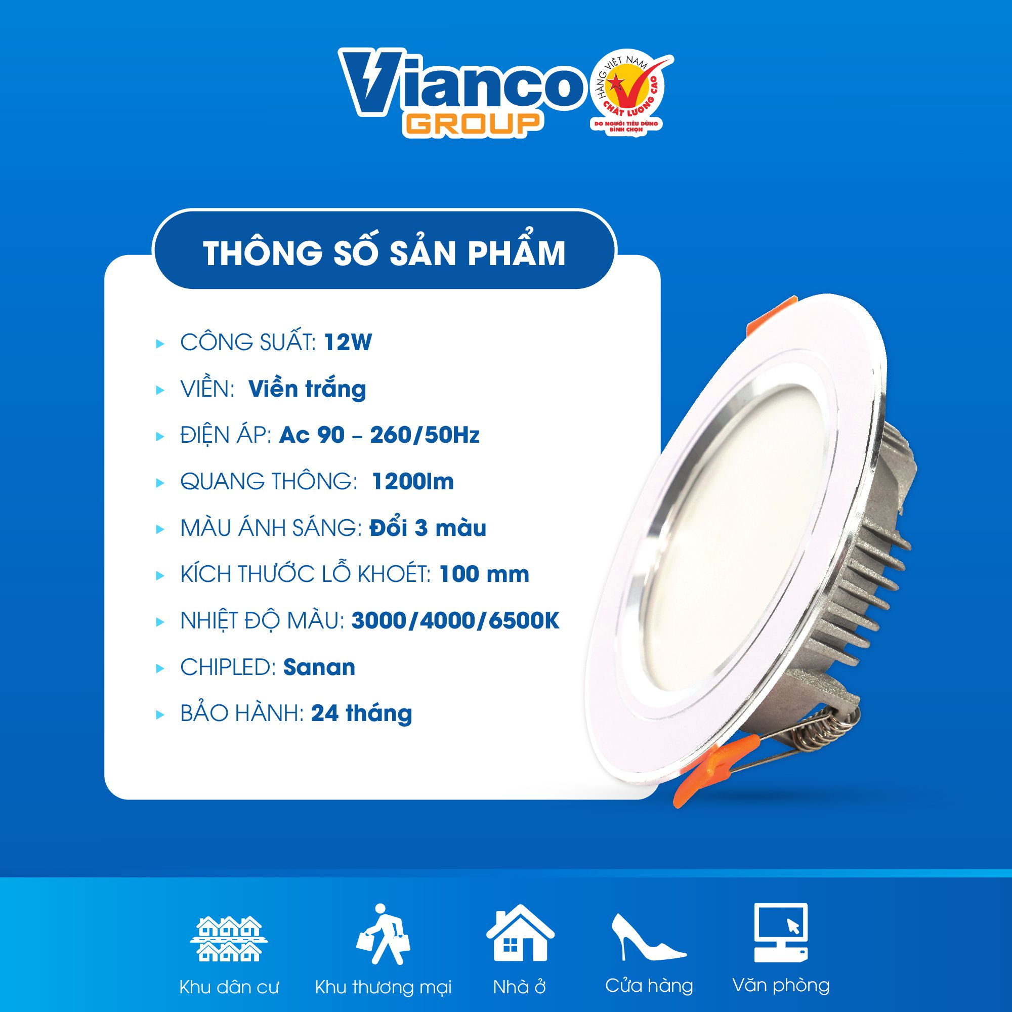 - Chiếu sáng nhà ở:Phòng khách, phòng ngủ, phòng bếp; Phòng tắm