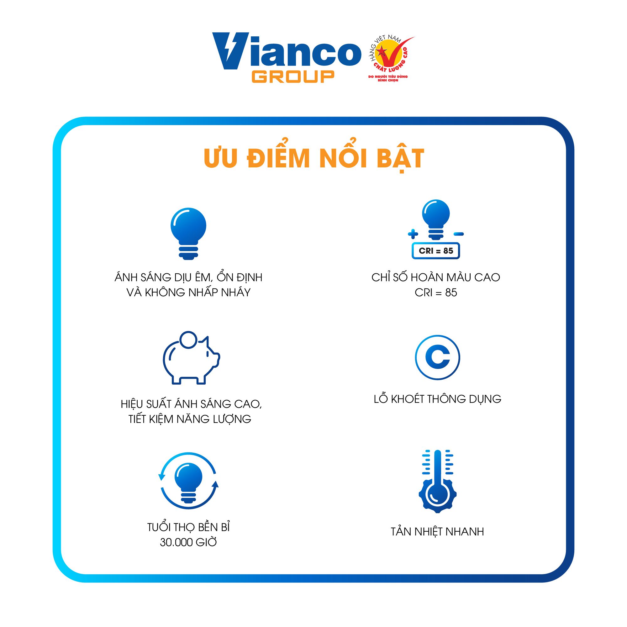 - Đế liền vành bằng nhựa PC: Chất liệu bền chắc, chịu nhiệt tốt, đảm bảo độ an toàn và tăng tuổi thọ sản phẩm.