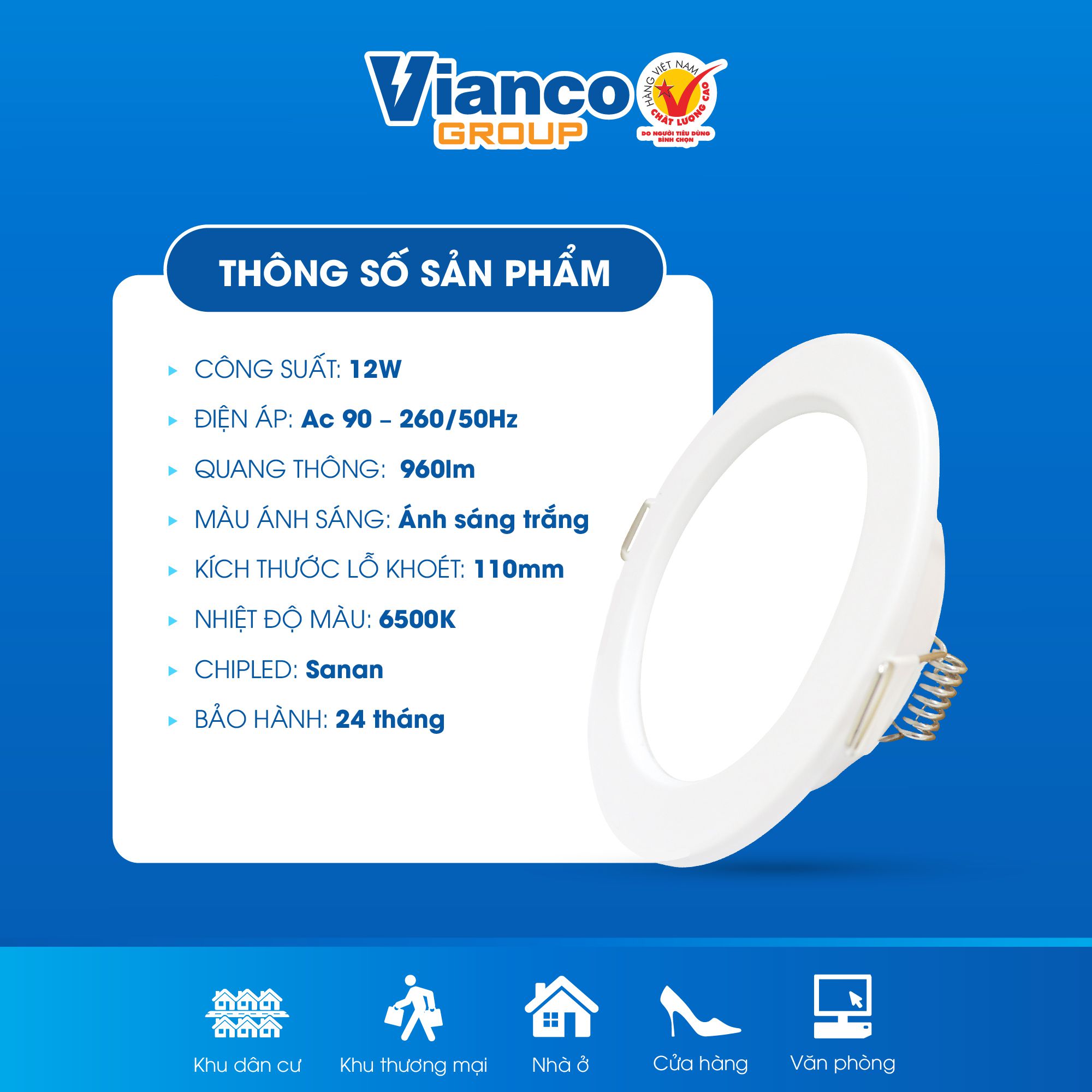 - Kích thước lỗ khoét: 110mm
