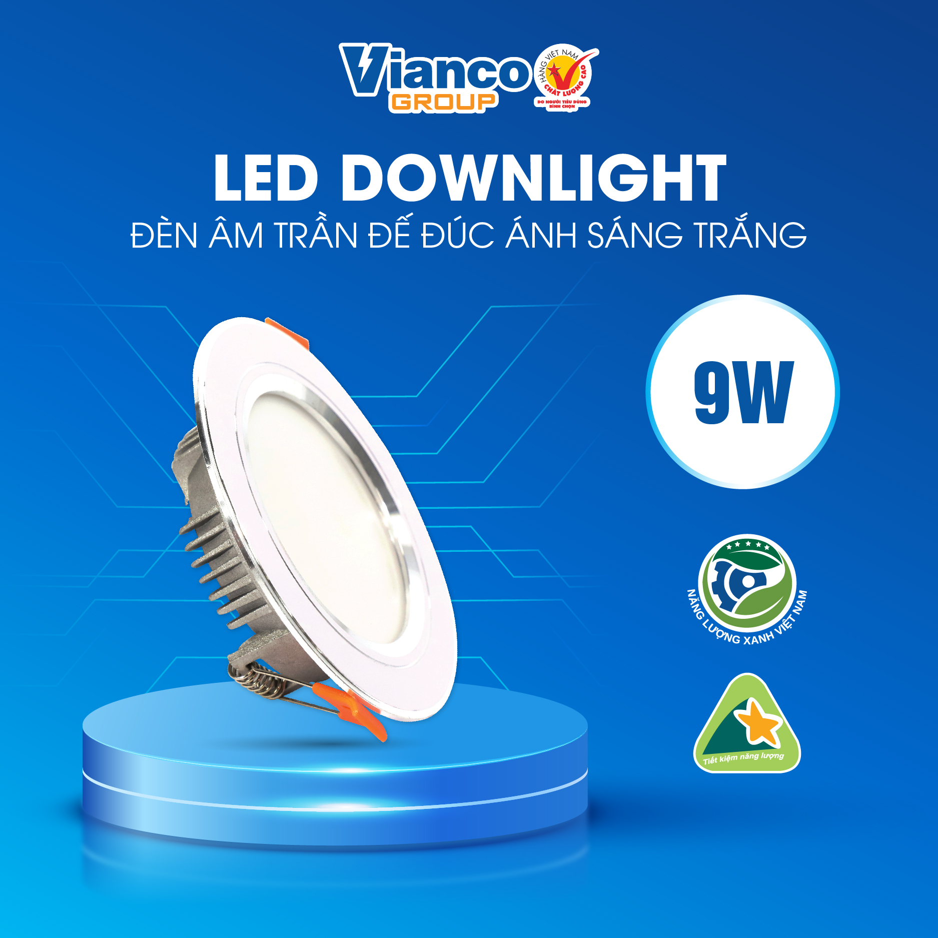 Đèn LED LED âm trần A27VA 9W đế đúc thân nhôm viền trắng - AS Trắng