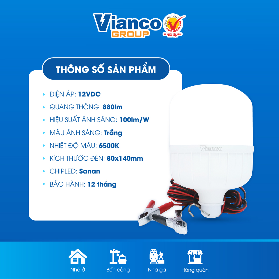Đèn hoạt động nhờ việc kết hợp với bình ắc quy của xe máy hoặc ô tô. Đây là giải pháp thay thế cực kỳ hữu hiệu cho mùa hè thường xảy ra tình trạng mất điện. Đặc biệt ở những vùng sâu vùng xa, không có lưới điện thì đèn LED kẹp bình ắc quy DC của Vianco là cực kỳ cần thiết. Ngoài ra, đèn được linh hoạt sử dụng với những hoạt động sản xuất, kinh doanh ở những nơi không có điện như đánh bắt cá trên sông, biển, hàng quán vỉa hè,...cho người dân đề phòng khi mất điện hay cần thắp sáng vào những ngày mưa bão.