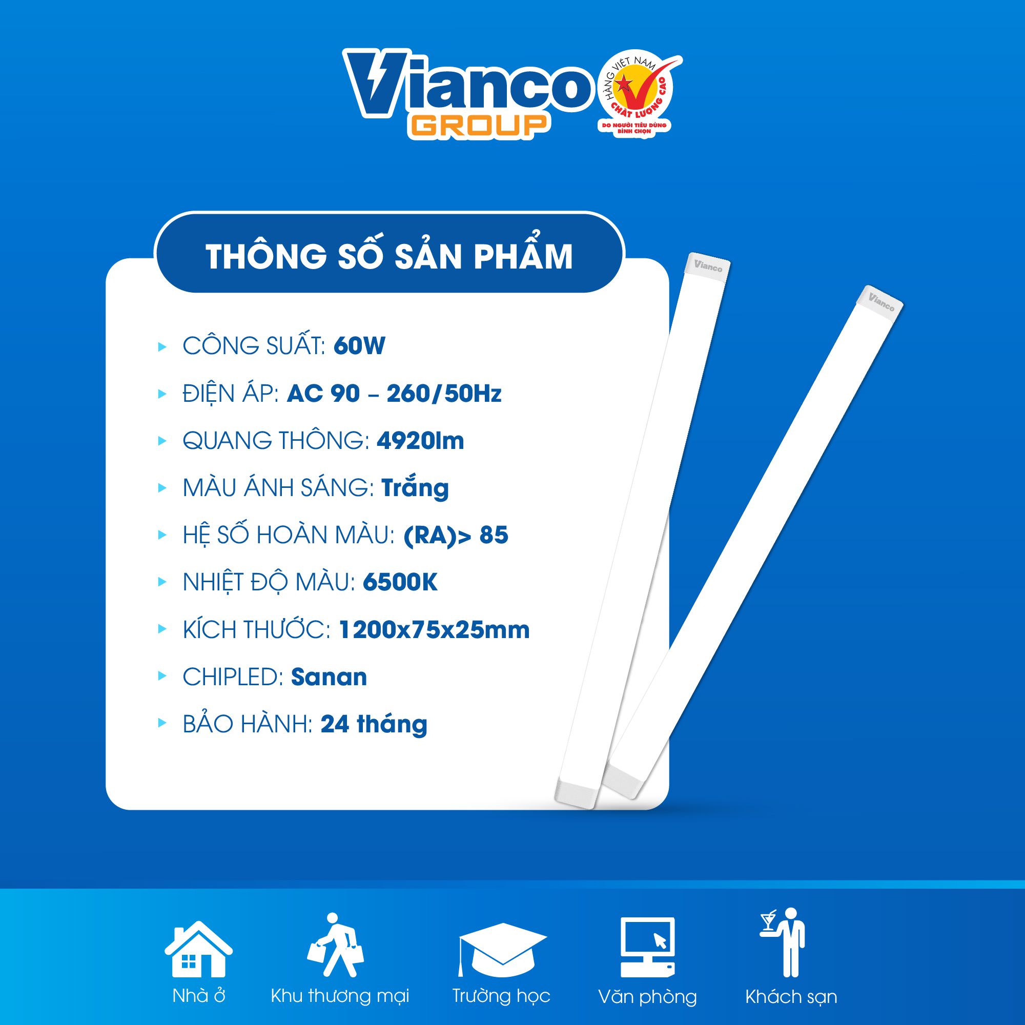 Đèn tuýp LED đầu vuông Vianco còn được thiết kế sang trọng, thanh mảnh, hình dáng đầu vuông, đẹp, rất phù hợp cho các không gian: phòng khách, phòng ngủ, văn phòng làm việc, phòng họp, hội trường hoặc các nhà máy lớn, công xưởng cần nhiều ánh sáng, các trung tâm mua sắm, siêu thị, cửa hàng, showroom
