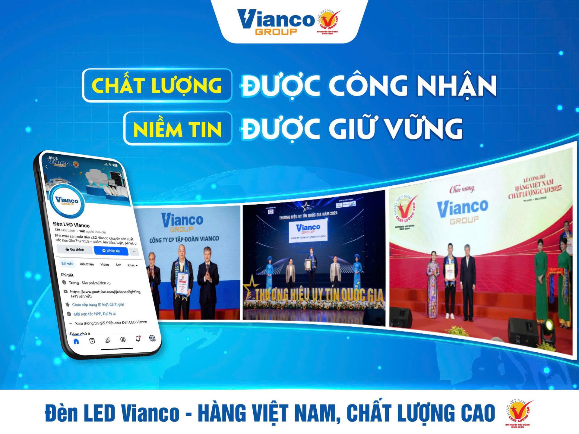 Vianco ghi dấu ấn mạnh mẽ trên thị trường khi nhiều năm liền được người tiêu dùng bình chọn danh hiệu “Hàng Việt Nam chất lượng cao”, đặc biệt duy trì liên tiếp trong giai đoạn 2022 – 2025. Danh hiệu này không chỉ là sự ghi nhận về chất lượng sản phẩm, mà còn phản ánh mức độ tin cậy và sự ưu tiên lựa chọn của người tiêu dùng đối với một thương hiệu nội địa trong lĩnh vực chiếu sáng. Qua đó, Vianco từng bước khẳng định vị thế vững chắc và năng lực cạnh tranh bền bỉ trên thị trường.