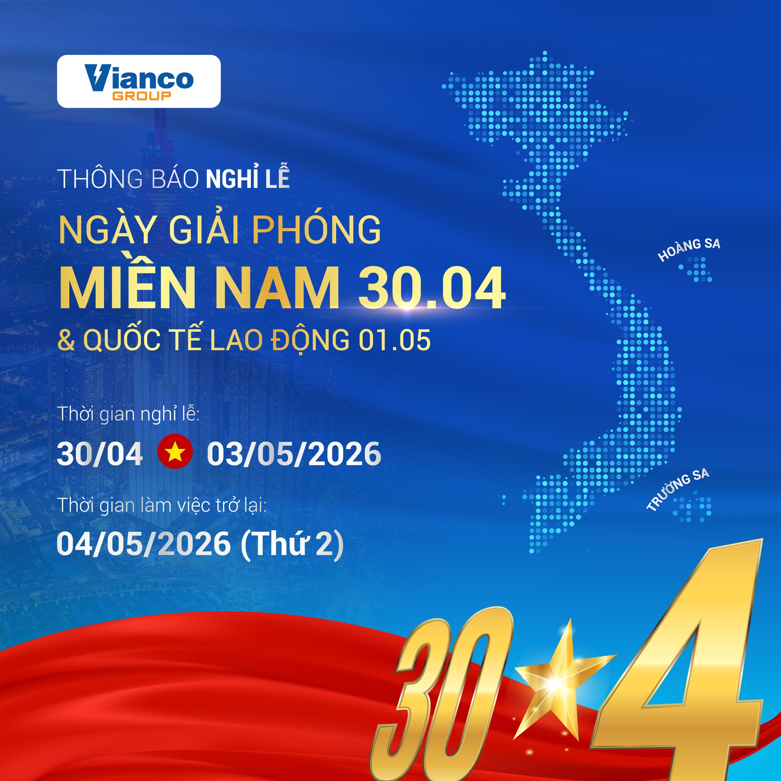 - Thời gian làm việc trở lại: Ngày 04/05/2026 (Thứ Hai)