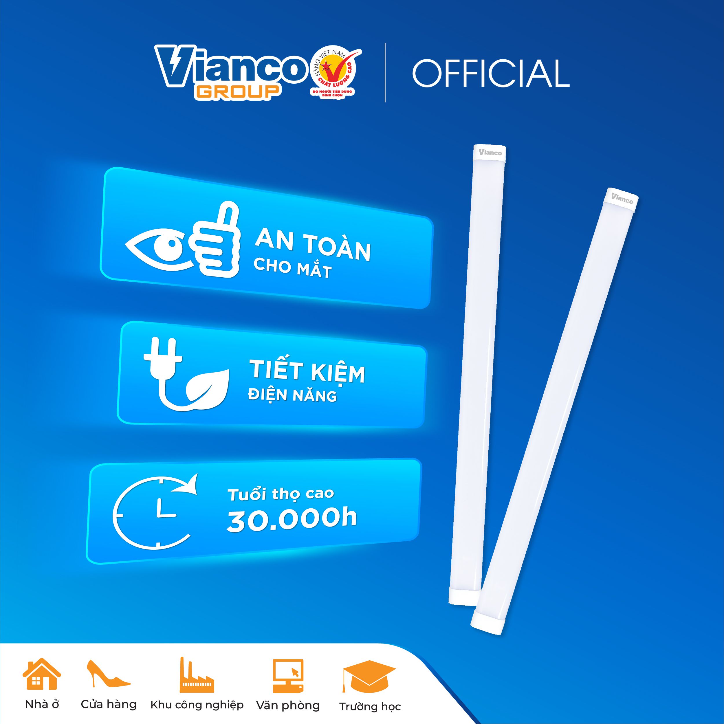 Đèn tuýp LED Oval Vianco có tuổi thọ lên đến 30.000 giờ, tương đương với hơn 10 năm sử dụng nếu hoạt động 8 giờ mỗi ngày. Điều này giúp giảm thiểu chi phí thay thế và bảo trì, mang lại hiệu quả kinh tế lâu dài. Với độ bền cao, sản phẩm này là lựa chọn lý tưởng cho các công trình lớn như nhà xưởng, siêu thị hay trường học, nơi cần hệ thống chiếu sáng hoạt động liên tục.