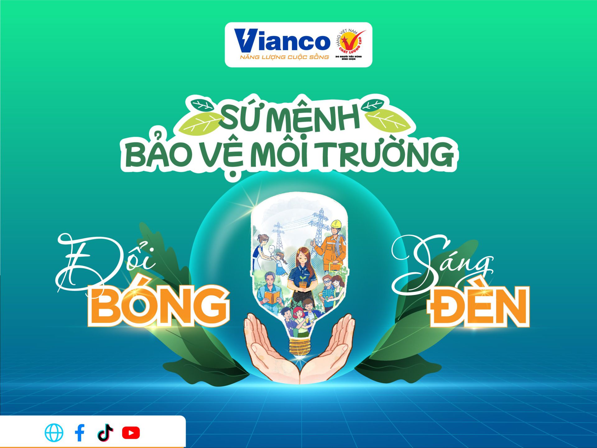 Hàng trăm triệu bóng đèn thải ra môi trường không đúng cách mỗi năm đang gây ảnh hưởng nghiêm trọng đến môi trường sống và sức khỏe của con người. “Đổi bóng - Sáng đèn” - Chương trình trọng điểm năm 2023 của Vianco nhằm thay đổi thói quen của người tiêu dùng từ bóng đèn công nghệ cũ lạc hậu qua bóng đèn công nghệ cao tiết kiệm điện. Đồng thời, thông qua đây sự kiện cũng thể hiện được mong muốn sứ mệnh bảo vệ môi trường đồng hành cùng ngành điện của Vianco.