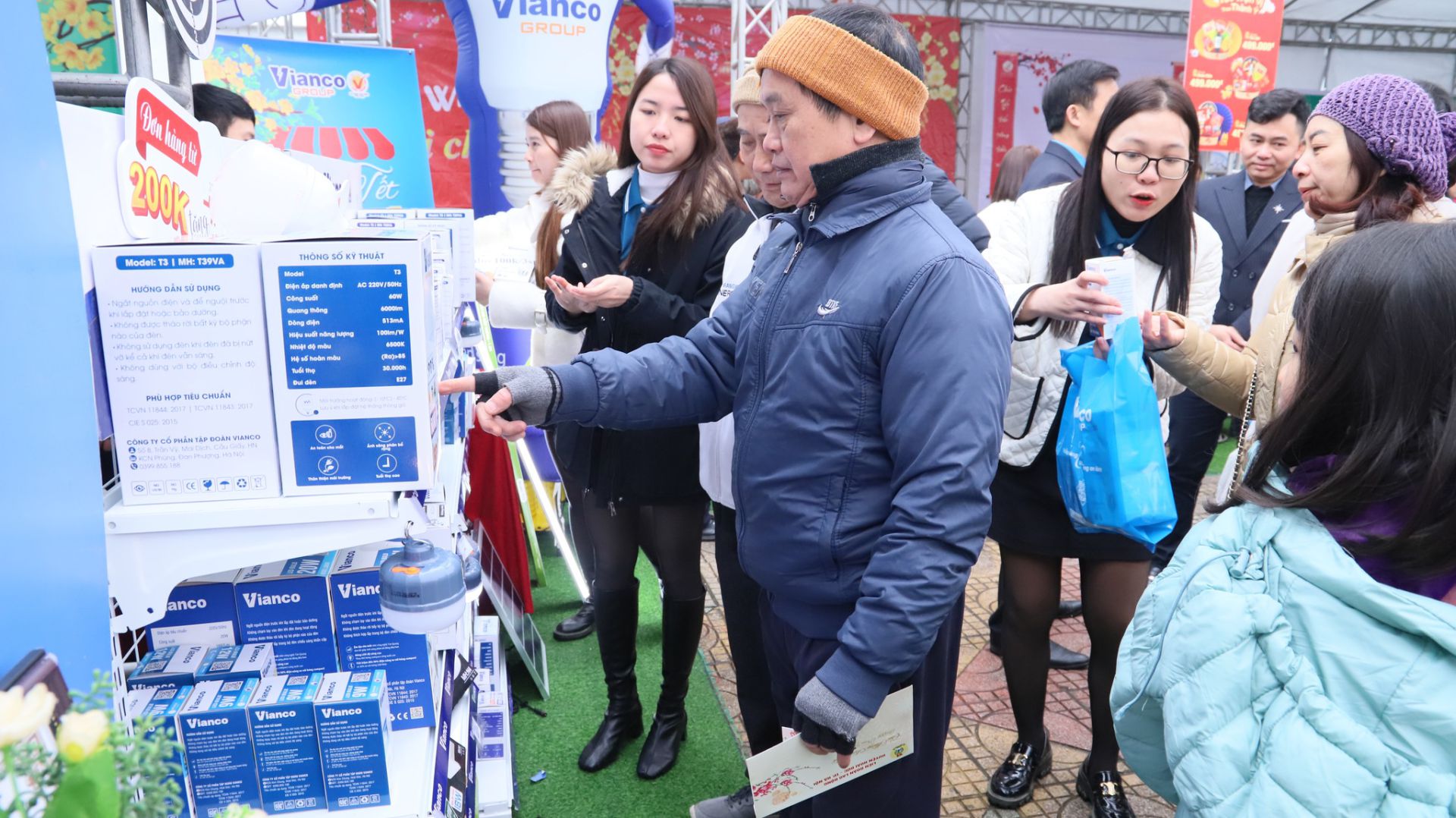 Gian hàng Vianco thu hút rất nhiều người lao động tới tham quan, mua sắm.