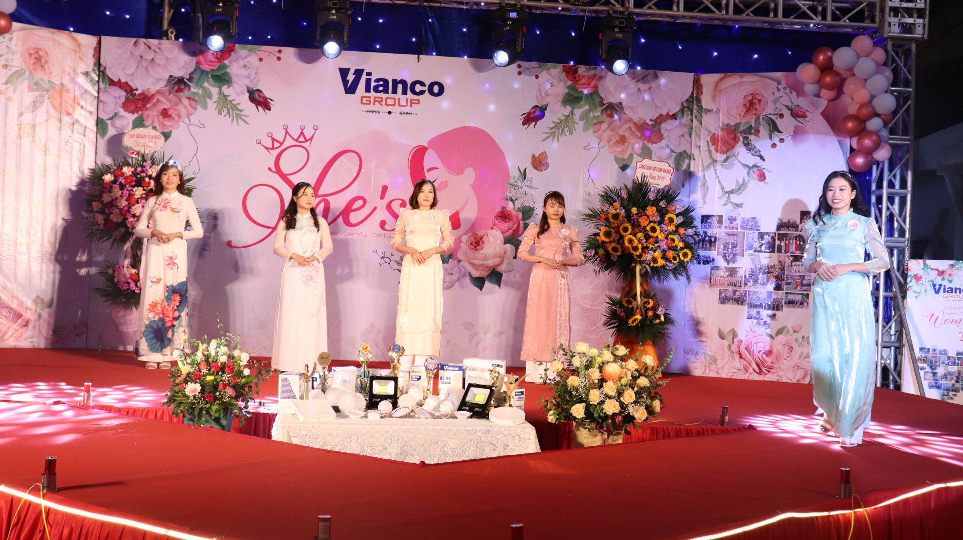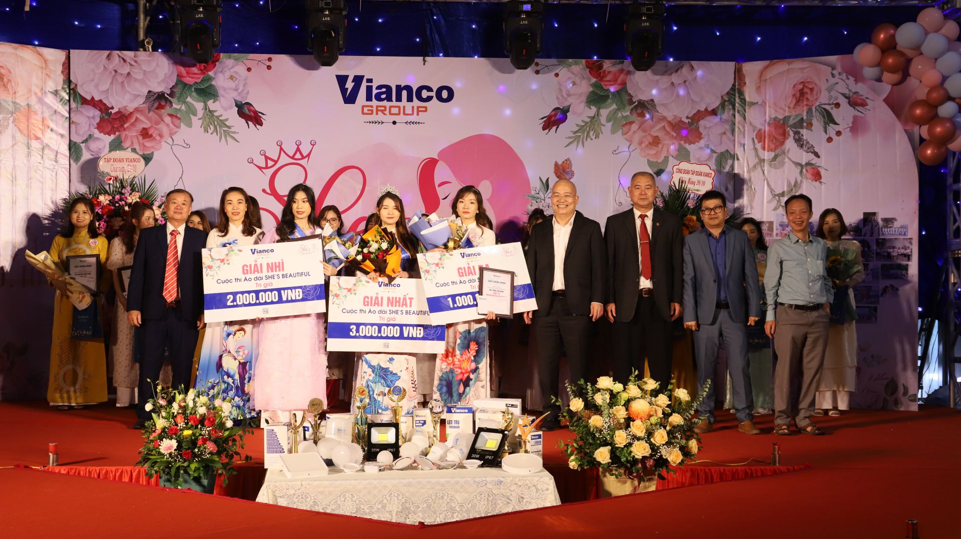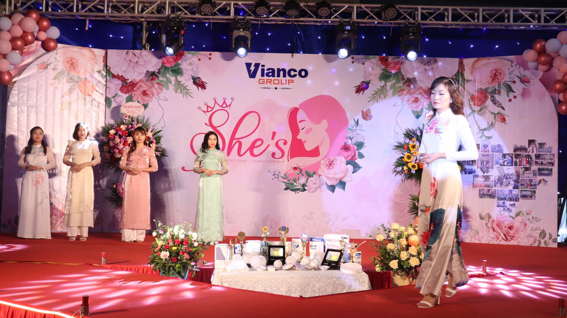 Để buổi lễ kỉ niệm thành công rực rỡ phải đặc biệt kể đến cuộc thi áo dài She’s Beautiful - cuộc thi sắc đẹp đầu tiên dành riêng cho các chị em phụ nữ Vianco. Cuộc thi thu hút rất nhiều CBCNV nữ Vianco quan tâm, với 18 thí sinh được lựa chọn trình diễn áo dài và tiếp tục chọn 5 thí sinh xuất sắc nhất vào vòng thi ứng xử. Giải nhất cuộc thi đã được trao cho thí sinh Nguyễn Thị Thúy - nhân viên phòng Marketing với câu trả lời đầy thuyết phục. Giải nhì được trao cho thí sinh Nguyễn Thị Thanh Nga đến từ phòng Kinh doanh 1 và giải ba đã thuộc về thí sinh Đặng Thị Ngân đến từ khối Sản xuất.