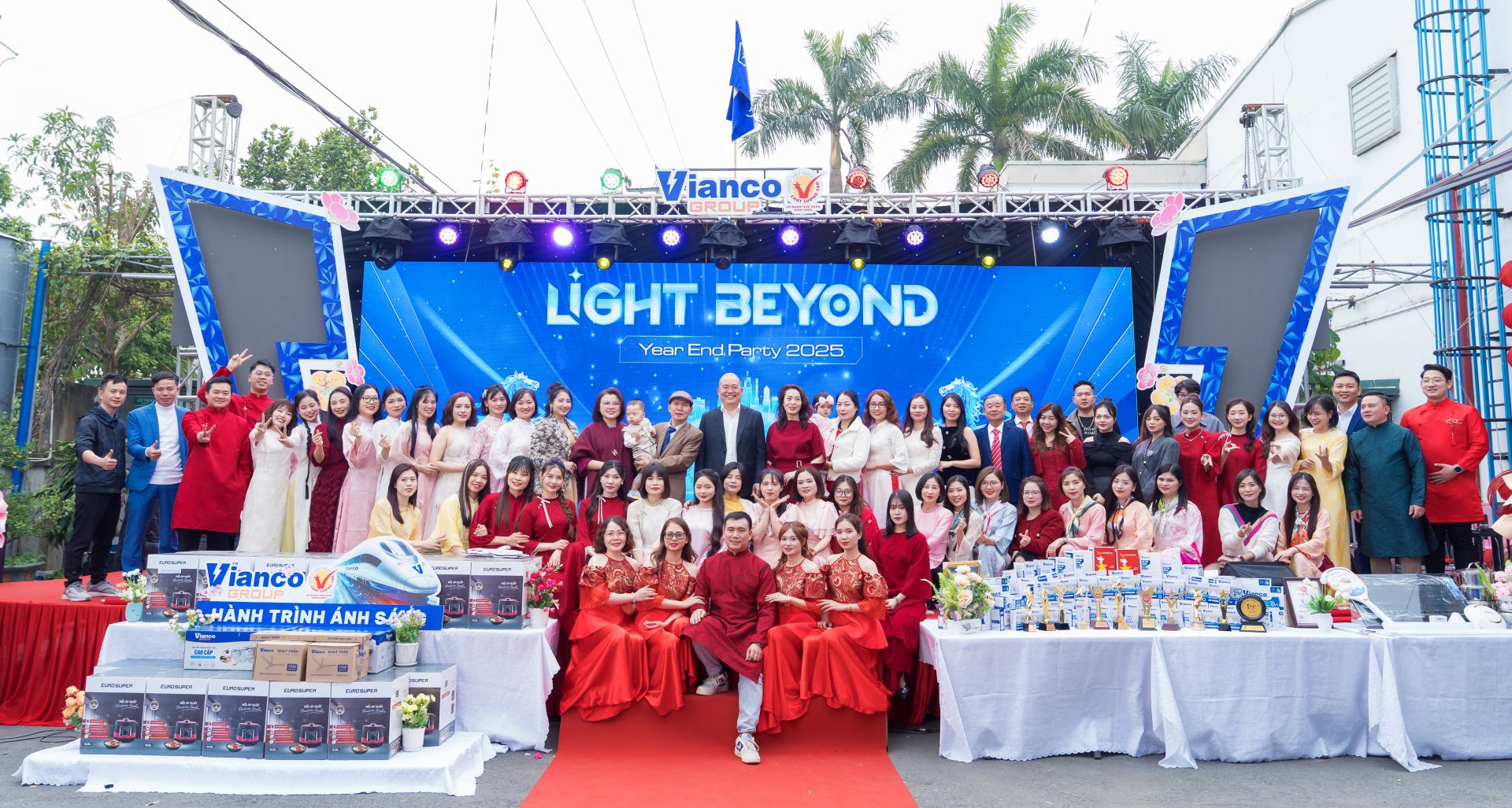 Chiều ngày 12/02/2026, tại Nhà máy Nam Liên, Tập đoàn Vianco đã tổ chức thành công chương trình Year End Party 2025 với chủ đề LIGHT BEYOND. Sự kiện không chỉ là dịp tổng kết hoạt động cuối năm mà còn là cột mốc quan trọng, đánh dấu hành trình nỗ lực bền bỉ và tinh thần không ngừng vượt giới hạn của tập thể Vianco trong suốt năm 2025.