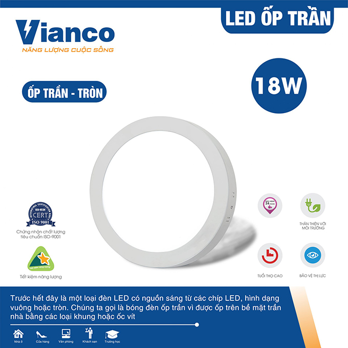 Đèn LED ốp trần Vianco không chỉ là một thiết bị chiếu sáng mà còn là điểm nhấn nghệ thuật, giúp nâng tầm giá trị thẩm mỹ cho mọi không gian. Với thiết kế hiện đại, sản phẩm này phù hợp cho nhiều khu vực như phòng khách, phòng ngủ, nhà bếp, văn phòng, hay thậm chí là các không gian công cộng như khách sạn, nhà hàng. Dù bạn sở hữu phong cách nội thất cổ điển hay hiện đại, đèn LED ốp trần Vianco đều có thể hòa quyện hoàn hảo, mang lại sự sang trọng và tinh tế.