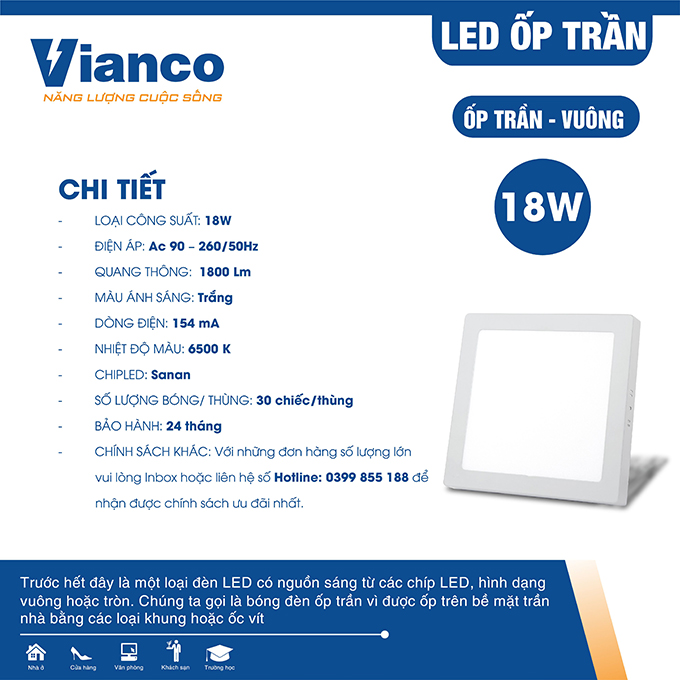 Đèn LED ốp trần Vianco không chỉ là một giải pháp chiếu sáng mà còn là cách để bạn nâng tầm không gian sống, biến mỗi góc nhà thành một tác phẩm nghệ thuật sống động. Với thiết kế tinh tế, công nghệ LED tiên tiến, hiệu quả năng lượng vượt trội và dịch vụ hậu mãi tận tâm, sản phẩm này xứng đáng là lựa chọn hàng đầu cho mọi gia đình và doanh nghiệp. Hãy để ánh sáng của Vianco thắp sáng ngôi nhà của bạn, mang lại sự đẳng cấp, hiện đại và thân thiện với môi trường!