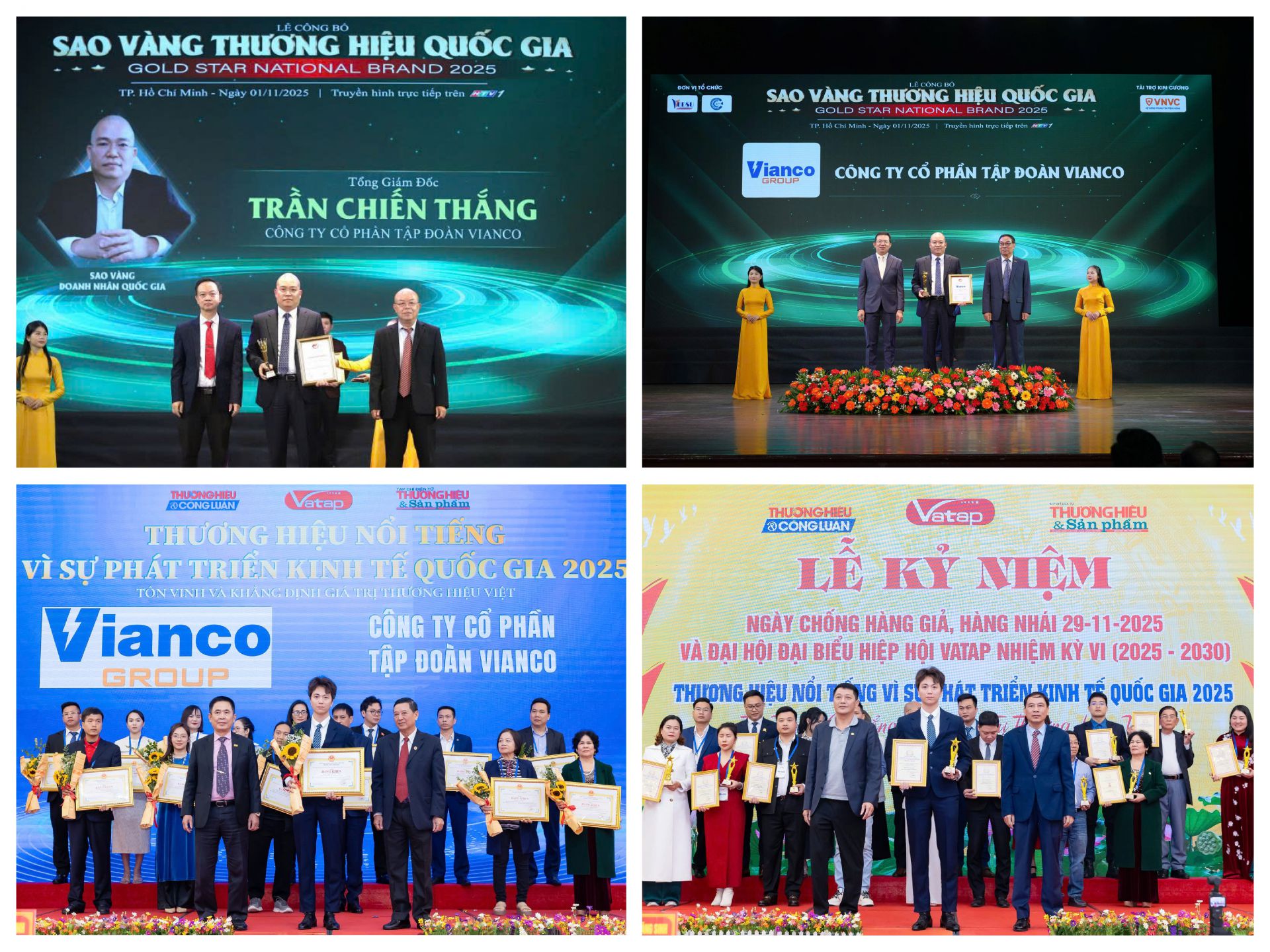Đặc biệt, tháng 11/2025 được xem là dấu son rực rỡ khi Vianco liên tiếp được xướng tên ở những hạng mục cao quý nhất. Một số danh hiệu tiêu biểu trong chuỗi thành tích ấn tượng này có thể kể đến: