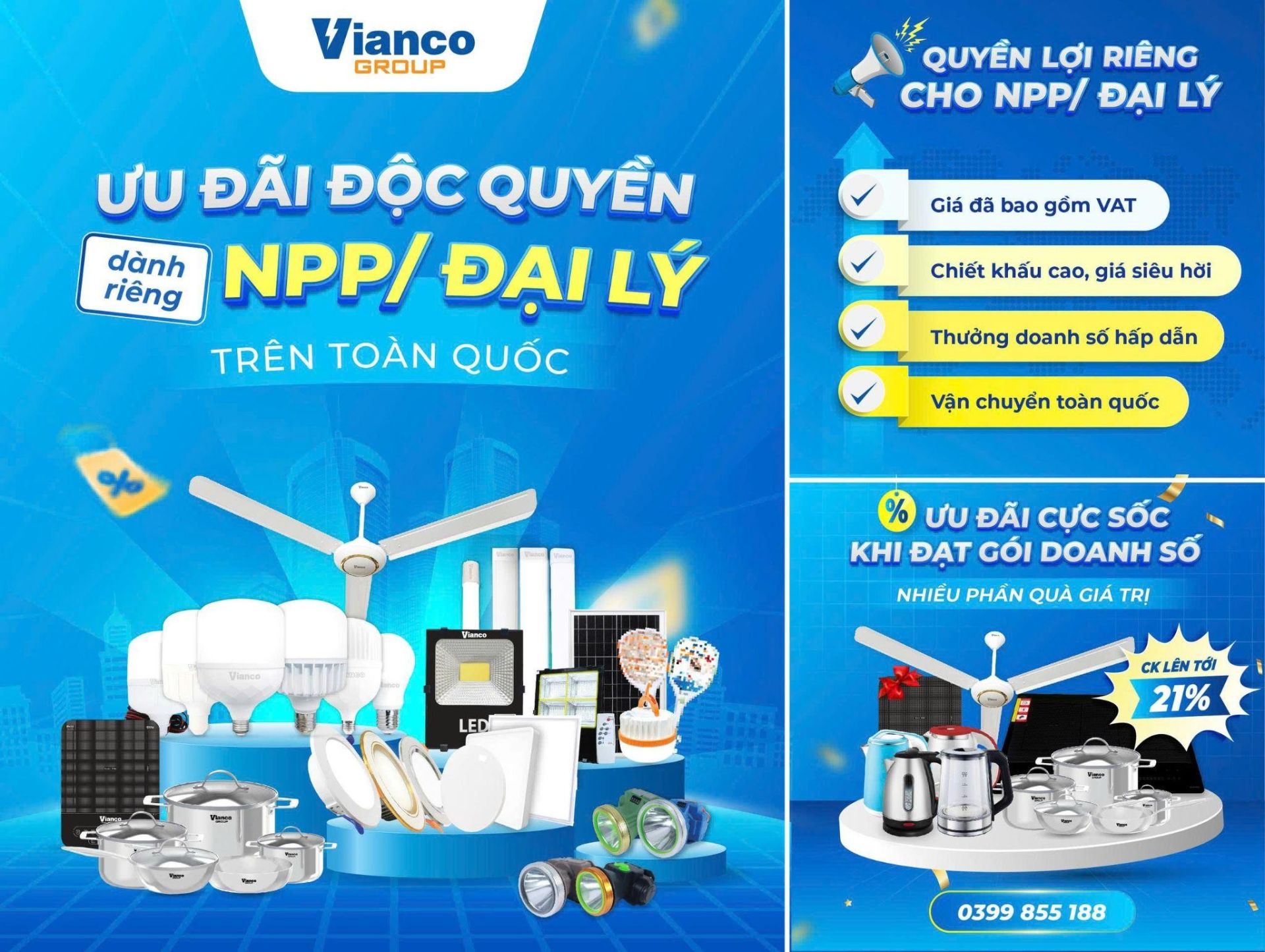 Với hệ sinh thái sản phẩm đa dạng từ chiếu sáng dân dụng, công nghiệp đến thiết bị gia dụng, Vianco tiếp tục mở rộng mạng lưới đối tác trên nguyên tắc "Hợp tác cùng phát triển - Lợi ích bền vững". Doanh nghiệp cam kết đồng hành cùng các Nhà phân phối và Đại lý để đưa những sản phẩm mang thương hiệu Việt, chất lượng quốc tế đến gần hơn với người tiêu dùng.