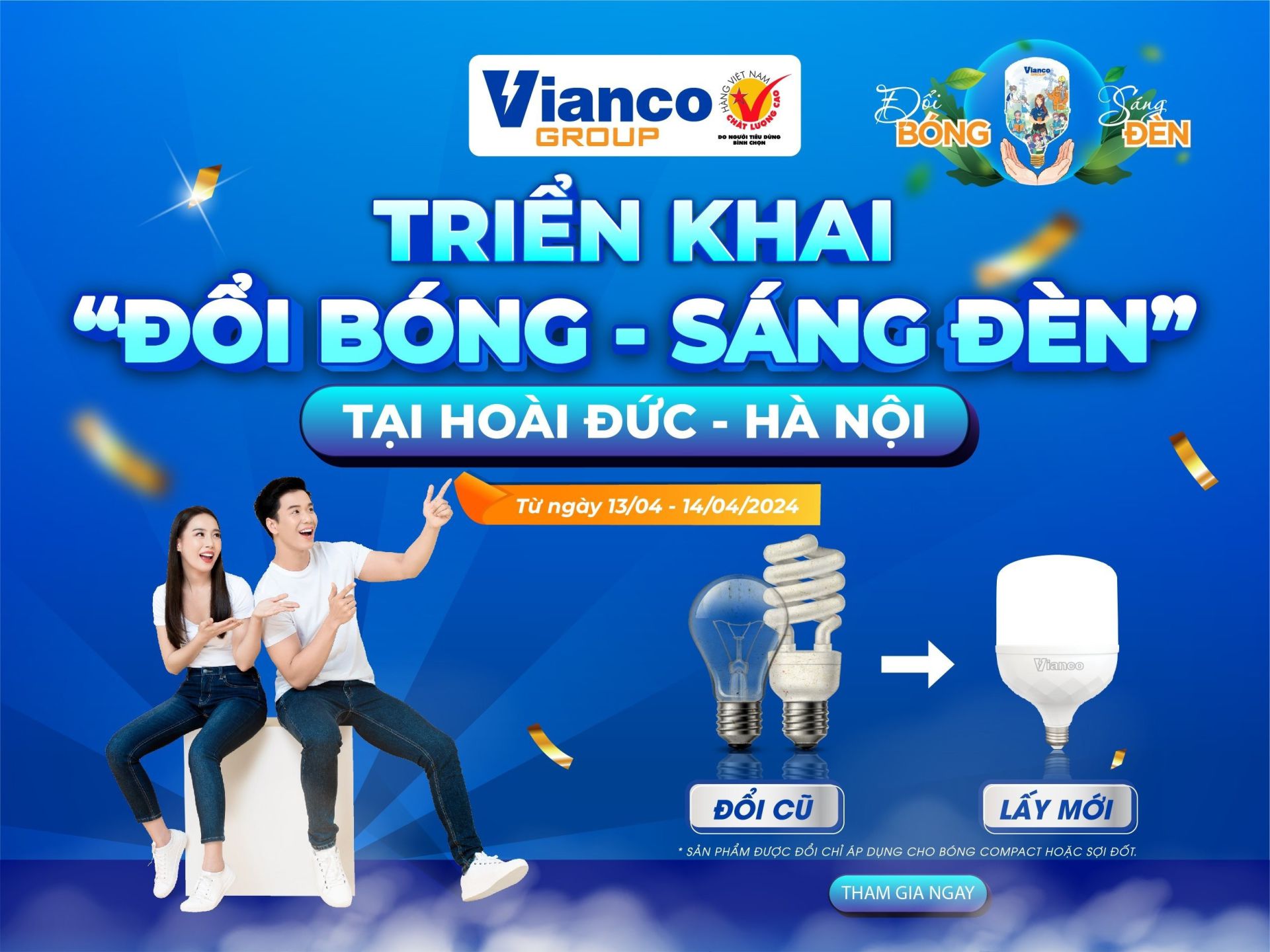 Vì một sứ mệnh "Thắp sáng xanh cho cuộc sống an lành", VIANCO mang đến một chiến dịch vì cộng đồng nhằm mang lại nhiều giá trị thiết thực, góp phần thay đổi thói quên tiêu dùng của người dân Hãy cùng Vianco tham gia đổi bóng, chia sẻ thông tin sự kiện tới bạn bè và người thân để tạo nên những thay đổi tích cực cho cuộc sống.